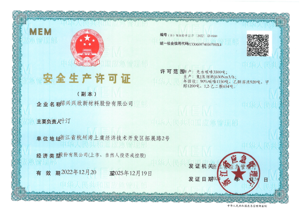 紹興興欣新材料股份有限公司成立于2002年06月27日,占地面積122畝,位于杭州灣上虞經(jīng)濟(jì)技術(shù)開發(fā)區(qū)拓展路2號(hào),現(xiàn)有職工200余人,專業(yè)技術(shù)人員50余人;博士、碩士研究生30余人組成的一支知識(shí)型、專業(yè)化的技術(shù)科研團(tuán)隊(duì)。公司面向全球市場(chǎng),專業(yè)開發(fā)電子化學(xué)品、環(huán)?;瘜W(xué)品、醫(yī)藥中間體、高分子材料等先進(jìn)新材料重點(diǎn)領(lǐng)域的省級(jí)科技型企業(yè);建有浙江上虞、安徽東至兩個(gè)生產(chǎn)基地。目前為“國(guó)家高新技術(shù)企業(yè)”、浙江省“隱形冠軍”企業(yè)、浙江省專精特新中小企業(yè);建有“省級(jí)”研究開發(fā)中心,共建天津大學(xué)浙江紹興研究院電子化學(xué)品研發(fā)中心。